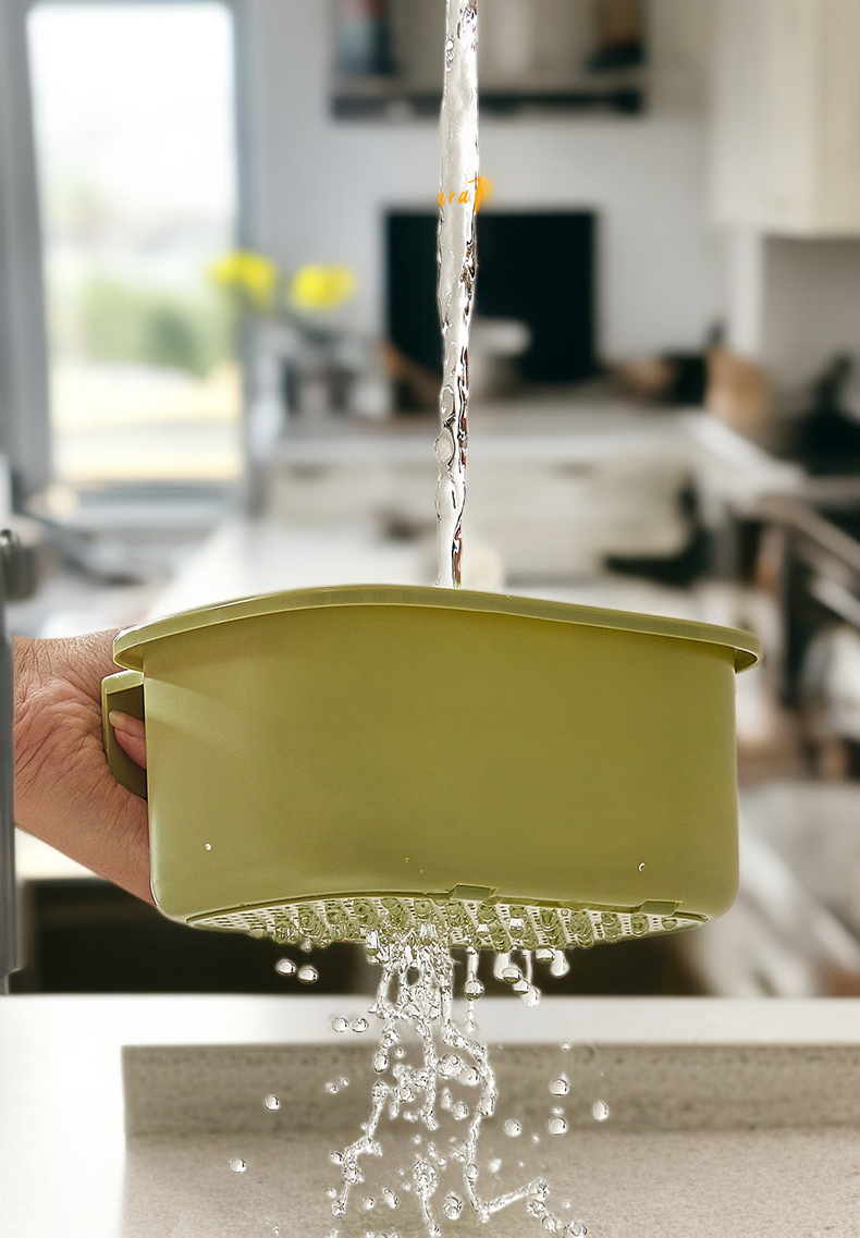 سلة تخزين معلقة لتصفية المياه مصنوعة من مواد متينة، سهلة التركيب، توفر مساحة، تساعد على تصريف المياه بسرعة، مناسبة للمطابخ والحمامات.